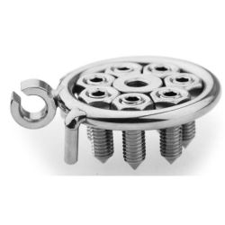 Cage Chastipik avec picots et tige de 1.2cm en métal inox, robuste et durable, intégrant une serrure pour sécurité.