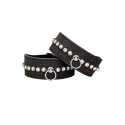 Menottes de chevilles Diamond Ouch : glamour et caractère pour vos jeux érotiques. En faux cuir et clous diamant, réglables pour un contrôle optimal.