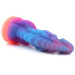 Le Gode Phosphorescent Lumy Dragon offre une longueur insérable de 18cm et une largeur allant de 3.5 à 7cm. Il est également équipé d'une base ventouse pour une utilisation sans les mains. Les couleurs présentes sur le gode sont le orange/rose, le violet et le bleu, offrant ainsi un aspect phosphorescent unique. Attention, chaque gode est unique et l'enchaînement des couleurs peut être différent. Photo non contractuelle.