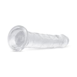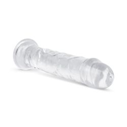 Godemichet en gel transparent de 20x3.8 cm, sans testicules, léger et étanche. Idéal pour la pénétration, compatible avec lubrifiant à base d'eau.