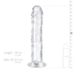 Dildo en gel de 18 cm, sans testicules, léger et flexible. Compatible avec lubrifiants à base d'eau, étanche et adapté au strap-on.