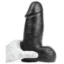 gode Hans DP104B noir 17 x 8,8 cm, contours épais en PVC sans phtalate avec base ventouse stable.