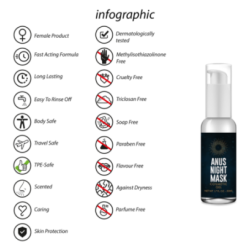 Les ingrédients hydratants de notre Masque de Nuit Anus Mask Night 50ml travaillent pendant votre sommeil pour nourrir en profondeur la peau délicate de votre anus. Réveillez-vous avec une sensation de fraîcheur et de douceur grâce à ce soin nocturne.