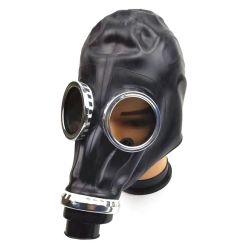 Masque à gaz Breath Game Noir, en caoutchouc robuste, pour asphyxie érotique. Vision claire, confort maximal, usage ludique.