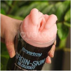 masturbateur 2 entrées vagin-anus Virgin-skin bleu, avec intérieur texturé pour sensations réalistes. Doux, flexible et résistant grâce à son matériau TPE.