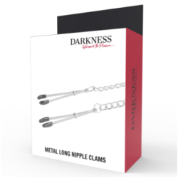 Les pinces à tétons de Darkness sont un secret coquin que vous pouvez partager avec votre amoureux. En effet, elles peuvent être utilisées comme un accessoire stimulant pendant vos moments d'amour, apportant une sensation unique et intensifiant le plaisir. Leur design en métal est à la fois élégant et robuste, assurant une longue durée de vie au produit.