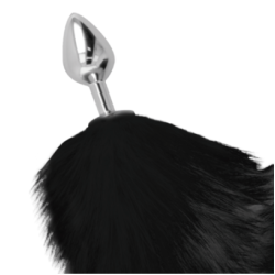plug anal argenté de 8cm avec queue noire de DARKNESS. Confortable, stimulant et visuellement séduisant. Idéal pour tous niveaux d'expérience.