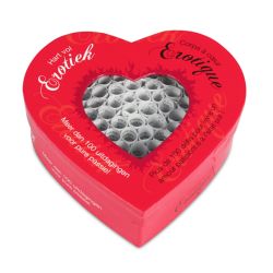 Jeu Érotique 100 Défis : jeu de préliminaires présenté dans un cœur contenant 100 défis érotiques pour pimenter vos moments intimes.