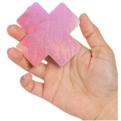Cache-tétons Wow boobs cross, accessoire de mode audacieux en forme de croix avec effet holographique. Disponible en 2 coloris.