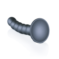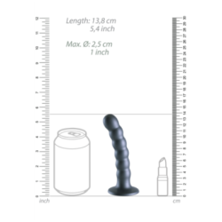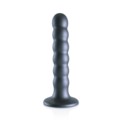 Dildo en silicone perlé 12.8x2.5cm, couleur gunmetal. Offre une succion puissante, texture perlée pour stimulation du point G. Flexible et doux.